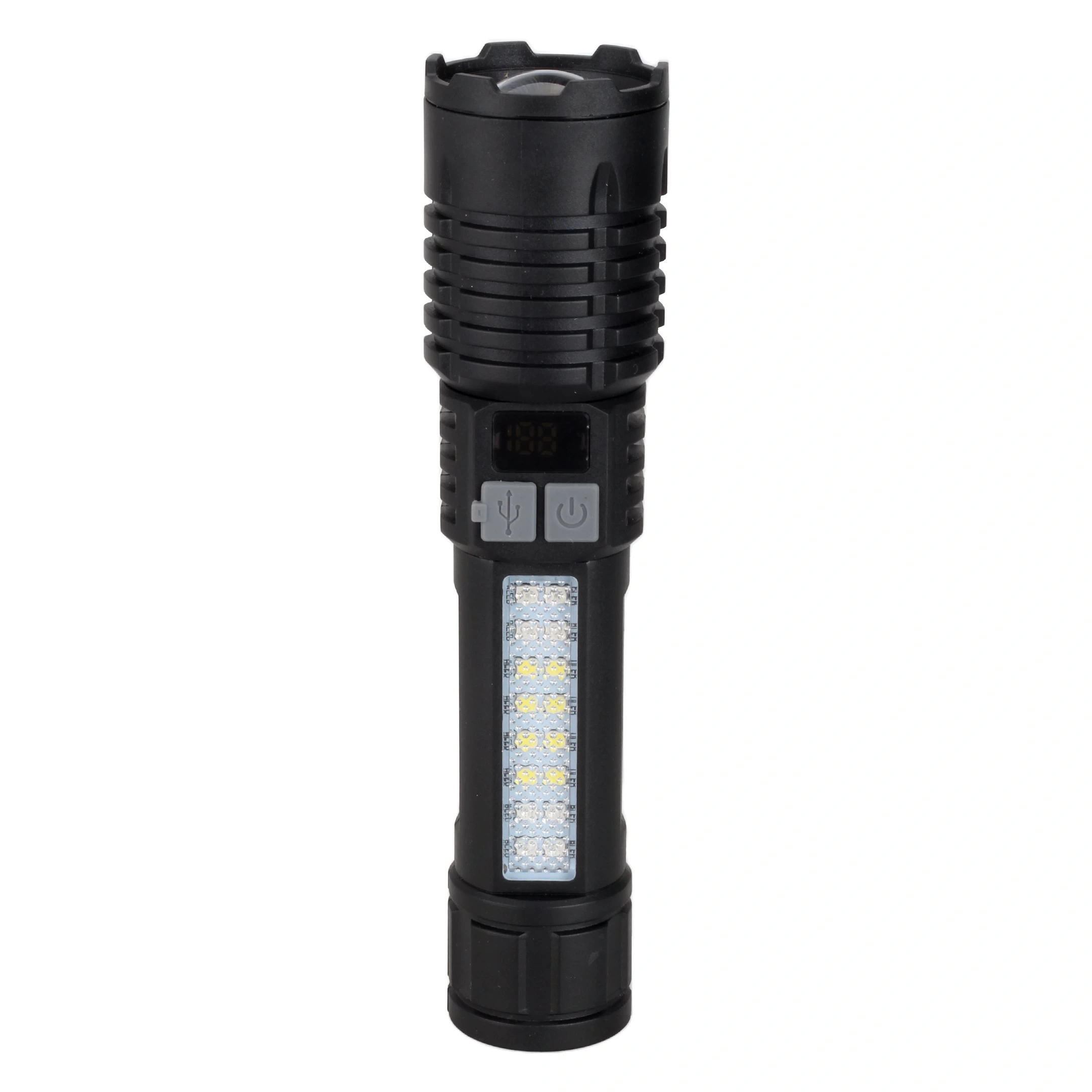 Panther PT-4114 USB Şarjlı El Feneri, çok yönlü aydınlatma ve yüksek parlaklık isteyen kullanıcılar için özel olarak tasarlanmıştır. P50 LED teknolojisi ile ön kısımdan gelen güçlü ışık sayesinde, karanlık ortamları net bir şekilde aydınlatır. Ek olarak, yan taraftaki SMD LED, hem beyaz ışık hem de kırmızı/mavi flaşör modu ile ekstra güvenlik ve görünürlük sunar.