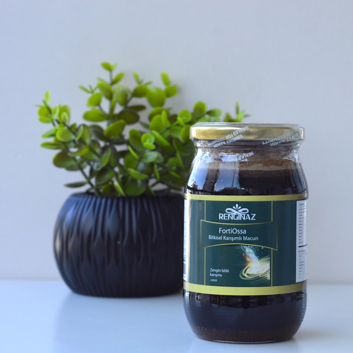 Renginaz FortiOssa Bitkisel Karışımlı Macun, özenle seçilmiş doğal bitkisel bileşenlerin geleneksel yöntemlerle hazırlanmasıyla elde edilen özel bir formüldür. Günlük yaşamın getirdiği yorgunluk, stres ve düzensiz beslenme alışkanlıklarının vücutta oluşturduğu yükü dengelemeye destek olmayı amaçlayan bu macun, zengin içeriğiyle genel yaşam kalitesine katkı sağlayan doğal bir destek ürünü niteliğindedir.